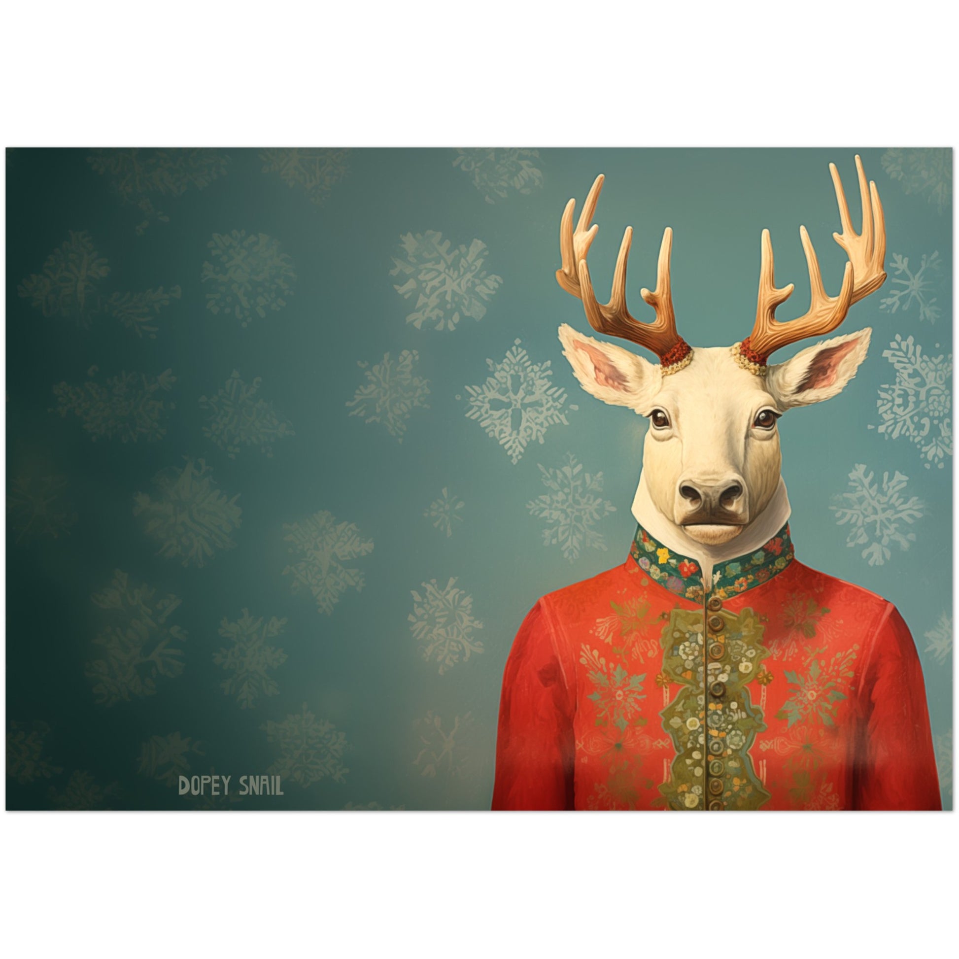 Pack of 10 Greeting Cards (standard envelopes) (US & CA) Mr Reindeer with Red Suit